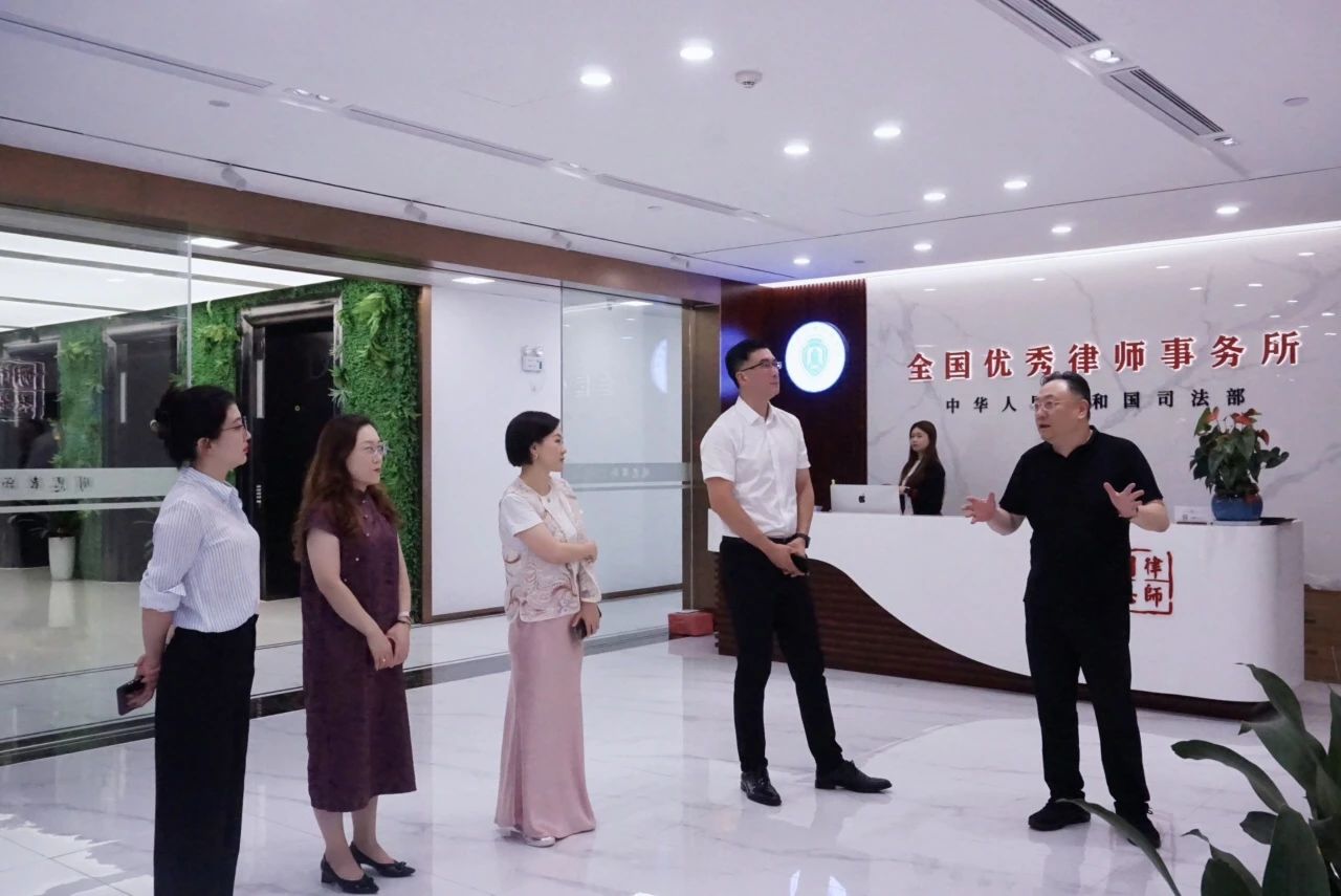 方昀主任首先带领赵景琛院长一行参观律所,详细介绍了明思律所的发展历程、文化建设、专业特色、党建工作、公益事业和经典案例。来访嘉宾对律所的业务水平、公益事业和人文氛围表示高度赞赏。