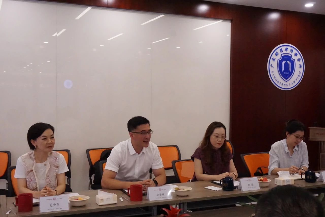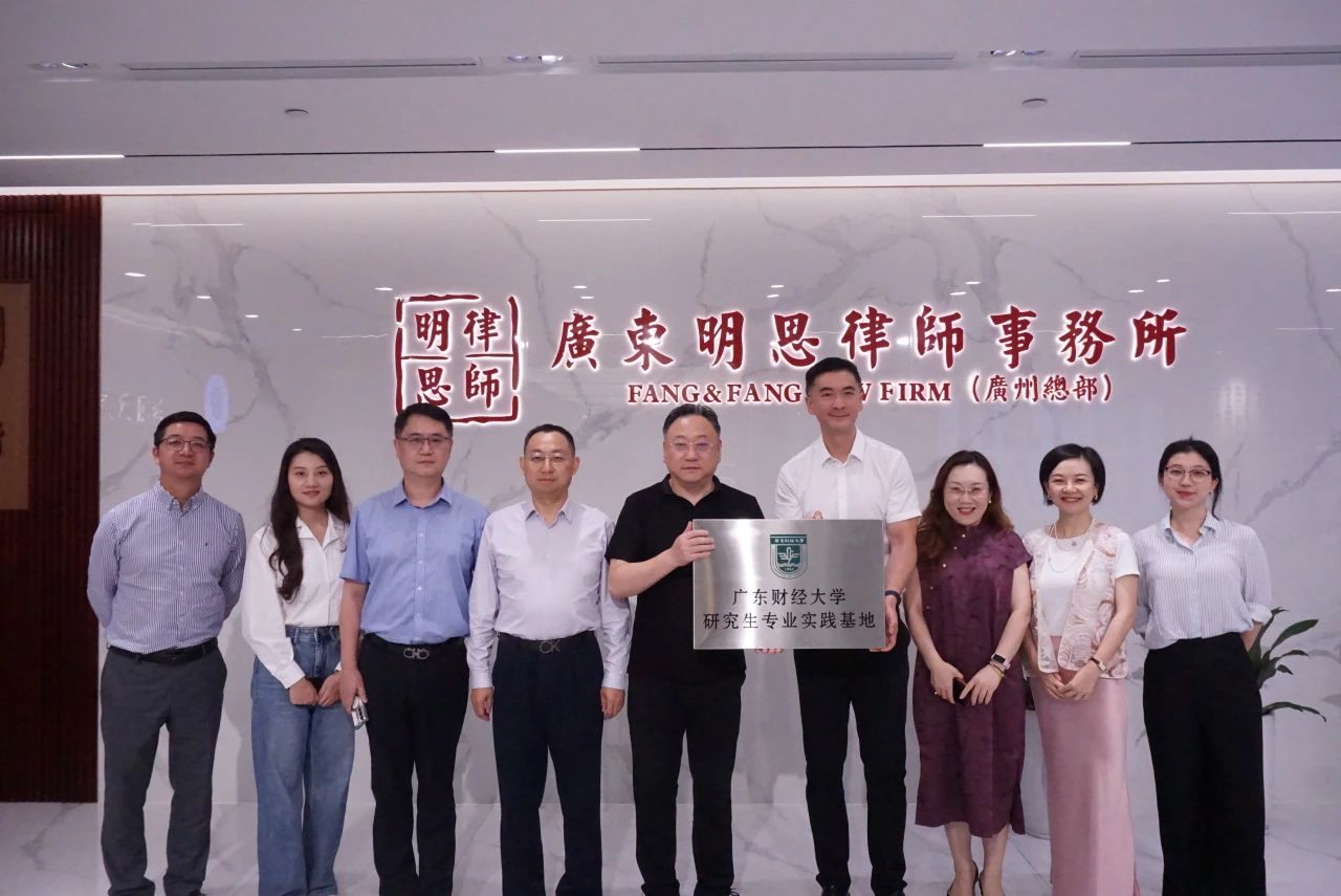 2025年8月13日,广东财经大学法学院新任院长赵景琛、副院长刘薇和邹郁卓以及夏金莱教授一行莅临广东明思律师事务所进行座谈交流。此行为广财法学院新一届领导班子上任后首次走访律师事务所,旨在深化广财与明思律所的合作,共育卓越法治人才,推动法学教育与法律实务的协同创新。广东明思律师事务所主任方昀博士携管委会成员黄浩、明亮,党支部书记余国祥,党支部副书记杨景茹等律师热情接待来访嘉宾。