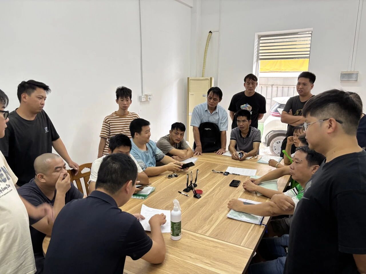 面对情绪焦急的工友,黄秉政律师首先扮演了“倾听者”的角色。他耐心安抚工人情绪,逐一、详细地了解欠薪的具体金额、持续时间以及相关企业的基本情况,迅速掌握了纠纷的核心事实与工友们的核心诉求。