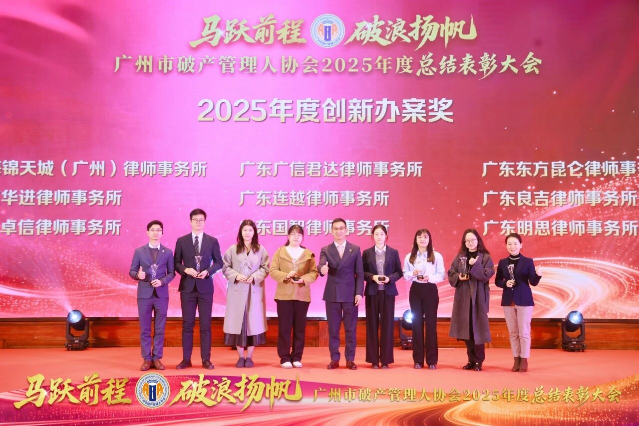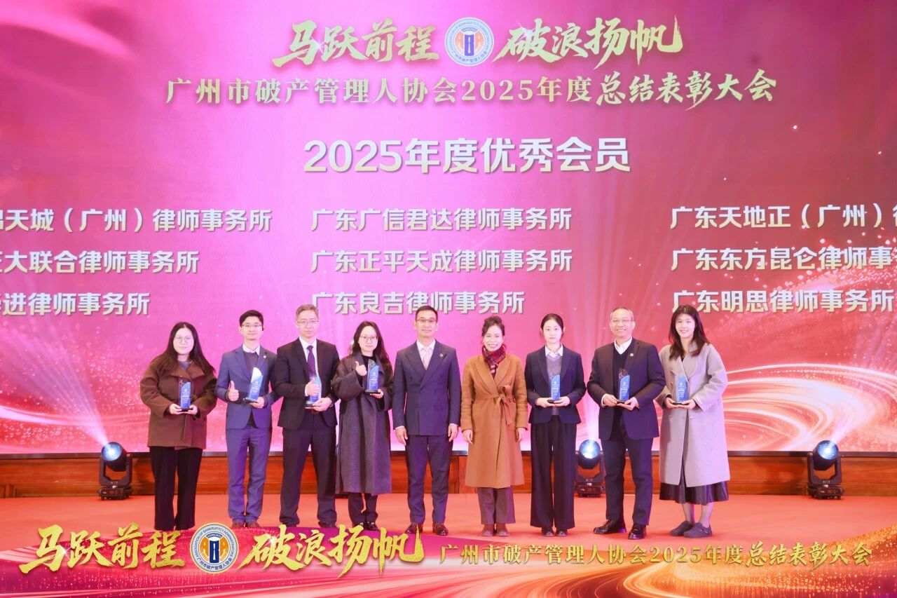 研讨会后,广州市破产管理人协会2025年度总结表彰大会召开。明思律所凭借在破产业务领域的深厚积淀、卓有成效的创新实践与持续性的行业贡献,一举荣获“2025年度优秀会员”“2025年度创新办案奖”及“2025年度优秀管理人”三项大奖,充分彰显了行业对明思律所专业实力与服务品质的高度认可。